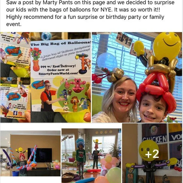 “We ordered the Big Bag of Balloons for a birthday party - the whimsical creations and balloon headwear were a big hit for the grownups and the kids!